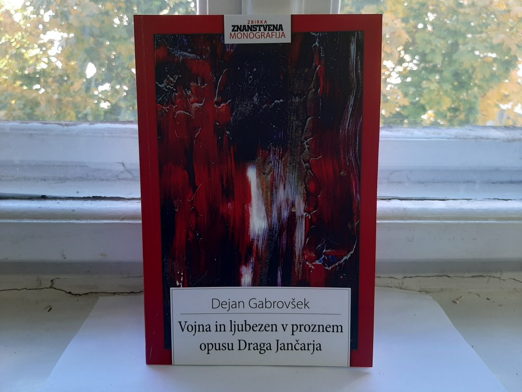 Slovenist in komparativist Dejan Gabrovšek se v svoji monografiji Vojna in ljubezen v proznem opusu Draga Jančarja temeljito loteva dveh tematik, ki znotraj Jančarjevega proznega opusa zasedata ključno mesto. Skozi natančnejšo interpretacijo del Katarina, pav in jezuit, Drevo brez imena, To noč sem jo videl ter In ljubezen tudi išče vzporednice, ki jo v obravnavanih romanih črtata temi vojne in ljubezni ter opisuje njuno vlogo pri Jančarjevi izgradnji romanesknih likov, pripovedi ter idejnih usmeritev romanov. Gabrovšek s svojo analizo pokaže, da se vojna in ljubezen, sicer protipola, pri Jančarju nenehno prepletata, se dopolnjujeta in tematsko preizkušata. A karte življenj Jančarjevih pripovednih likov na koncu obrne usoda – kot tista najvišja instanca, ki obe obravnavani temi tudi povezuje.